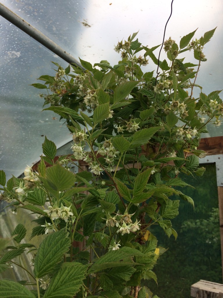 And fruits are forming on raspberry canes in the polytunnel. (Those outside are a couple of weeks behind.)