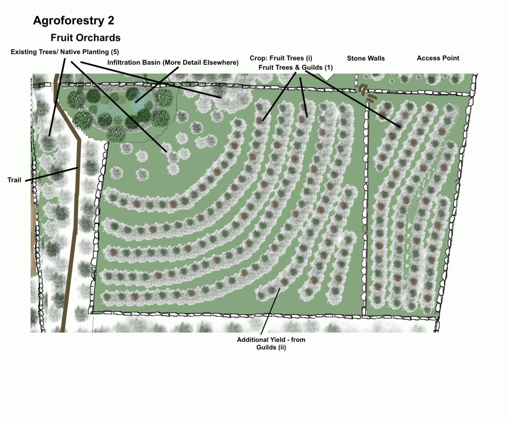 - Restoring agricultural activity on site to protect the rural nature of the community, boost food resilience and provide organic, fresh, sustainably grown products for the people of the site and the surrounding area.(Through the creation of mixed forestry, agroforestry and mixed agricultural field systems. Incubator plots of 0.1-0.5 acres are to be leased to aspiring farmers/ growers for field growing, fruit production, for non-timber forest products etc..)