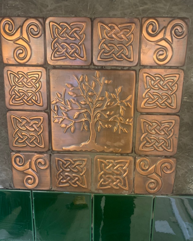 I like the tiles you chose. I find copper lovely and cozy in almost every shape.. The combination with the dark green is a bit unusual.. but quite harmonious with your corner of the earth.. A Celtic vibe .. and at the same time contemporary…