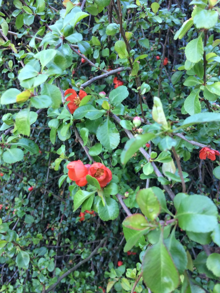 In rather deep shade a lot of the time, this shrub is not only beautiful. Like its neighbours – Mahonia japonica and Berberis Darwinii, this flowering quince also produces edible fruits. These fruits are high in vitamin C and though they are too bitter and sharp to enjoy raw from the shrub, they are great in the jams and jellies of the season.