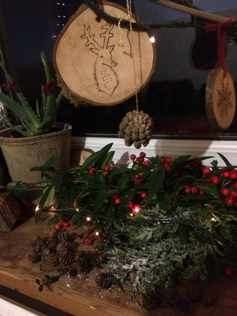 We sometimes bring in a living tree, and decorate it with natural decorations.