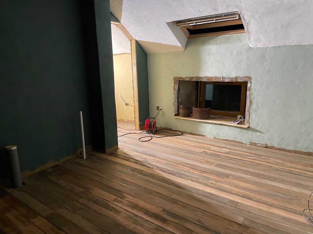 Today I had a day off work and we have started lightly sanding the reclaimed floorboards that we’ve laid in the upstairs of our barn conversion. We absolutely love the variation and patina, so won’t be sanding down to a fine finish. We are just sanding to achieve a reasonably smooth finish.