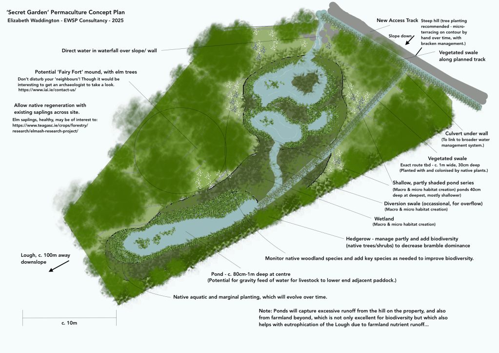 A series of small, shallow, shaded ponds and wetland zones through this area belonging to clients in Ireland can not