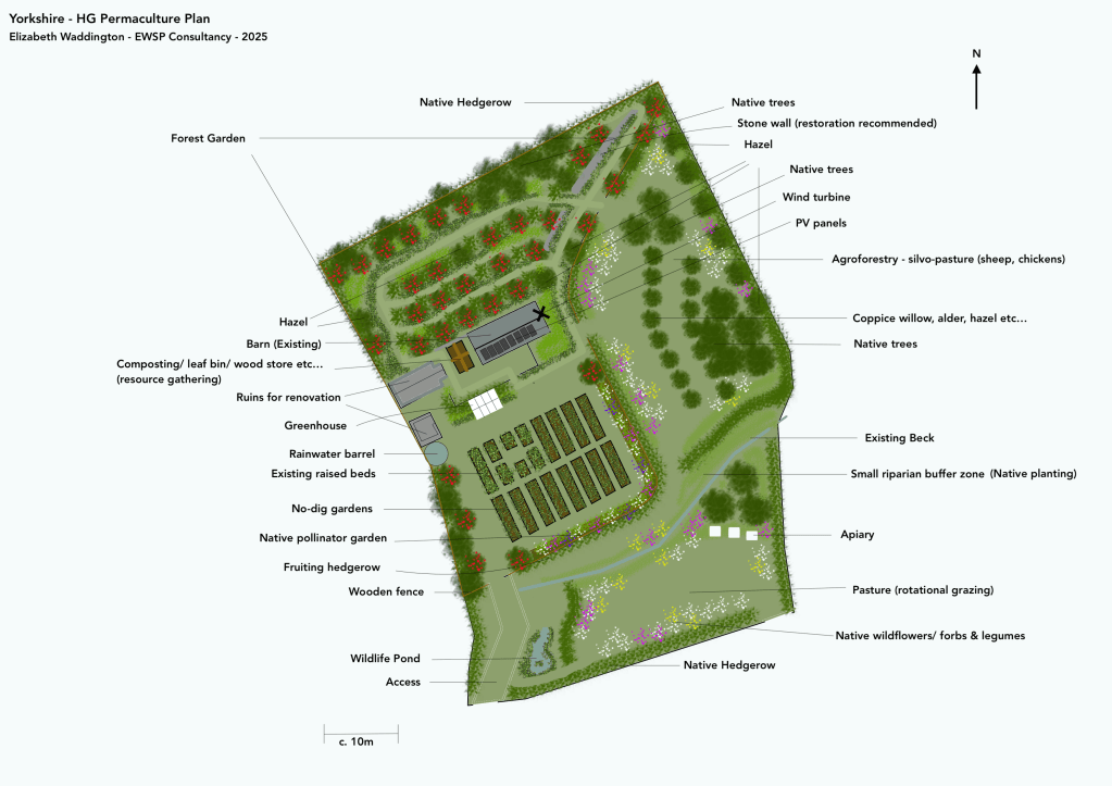 This is my design for a client in Yorkshire, in collaboration with a client excited to be taking the first steps towards a more self-reliant and resilient way of life on this small plot of land.