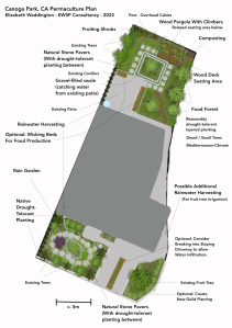 This is an example of water management in a small front garden in England. The garden is currently a scrubby area of lawn, with an old driveway and a few overgrown shrubs around the edge. The primary goal for the design was to prevent a small issue with water-logging to the side of the driveway,Continue reading “Case Study – Rain Garden” - Case Study: California Permaculture Design