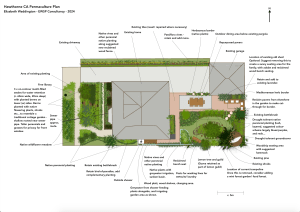 - Scaled plans for placement of plants within key planting zones utilising native and climate-suited plants, carefully considered to meet client preferences and goals.