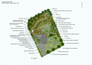 - Practical details for any earthworks/ levels/ materials/ irrigation etc… and notes to aid implementation of key ideas within the concept plan.