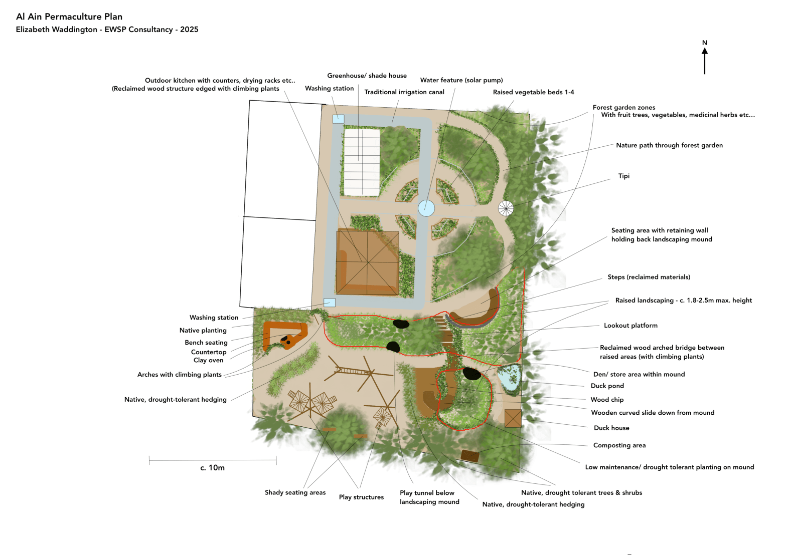 This is my design for a family-garden close to the Al Ain Oasis. Al Ain lies in the eastern region of Abu Dhabi Emirate, approximately 340 metres above sea level. The area experiences a hot desert climate (Köppen BWh) with very high solar radiation, low annual rainfall, and high evaporation rates. Summers are extremely hot,Continue reading “Family Garden Design – Al Ain, UAE”