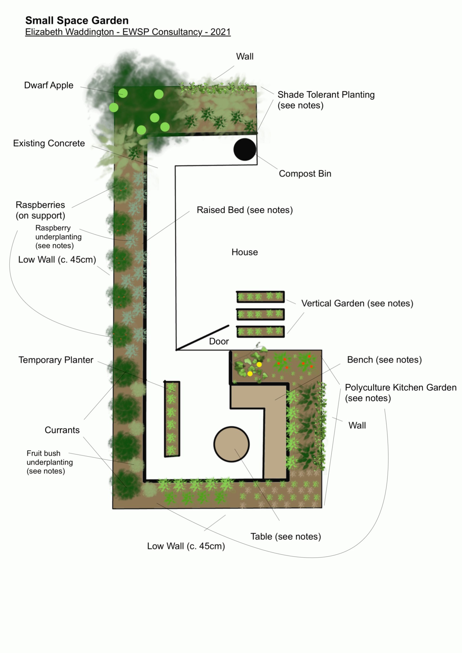 This plan aims to show how food can be grown in this small space for a family of three, with minimal effort for maximum yield. The plan includes a range of small space garden solutions, and incorporates plenty of perennial plants in addition to space for annual fruit and vegetable cultivation. Thought was given toContinue reading “Case Study: Small Yard Food Production”